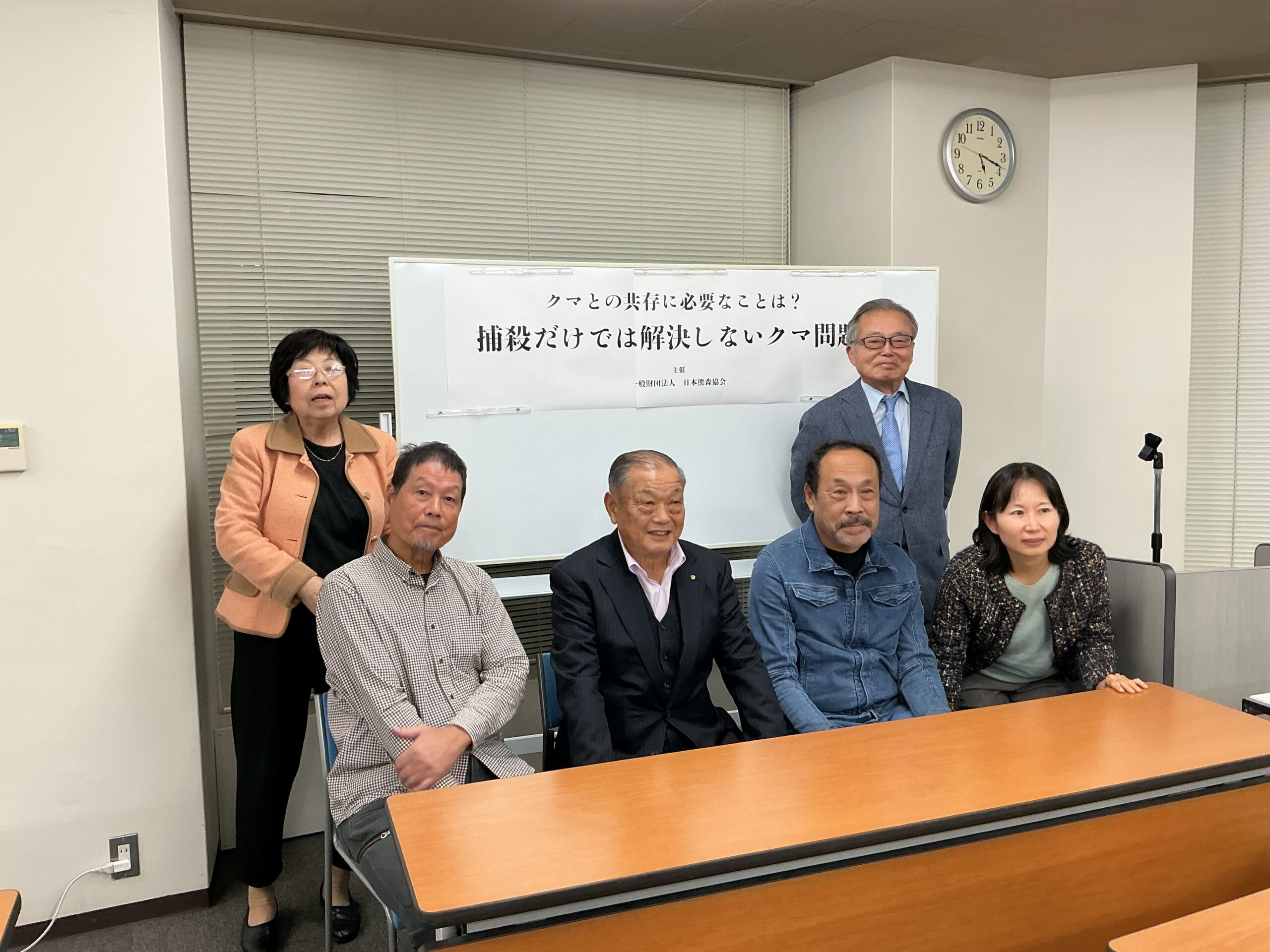 【14】クマを捕殺するだけでは問題は解決しない/12-8 ギャラリー 2025年12月8日 ad-akamatsu 一般財団法人「日本熊森協会」のシンポジウムが終わったあとに、登壇者4人(前列)と記念撮影しました。左端に立ってるのがこの会の創始者である森山まり子名誉会長です(12-7)