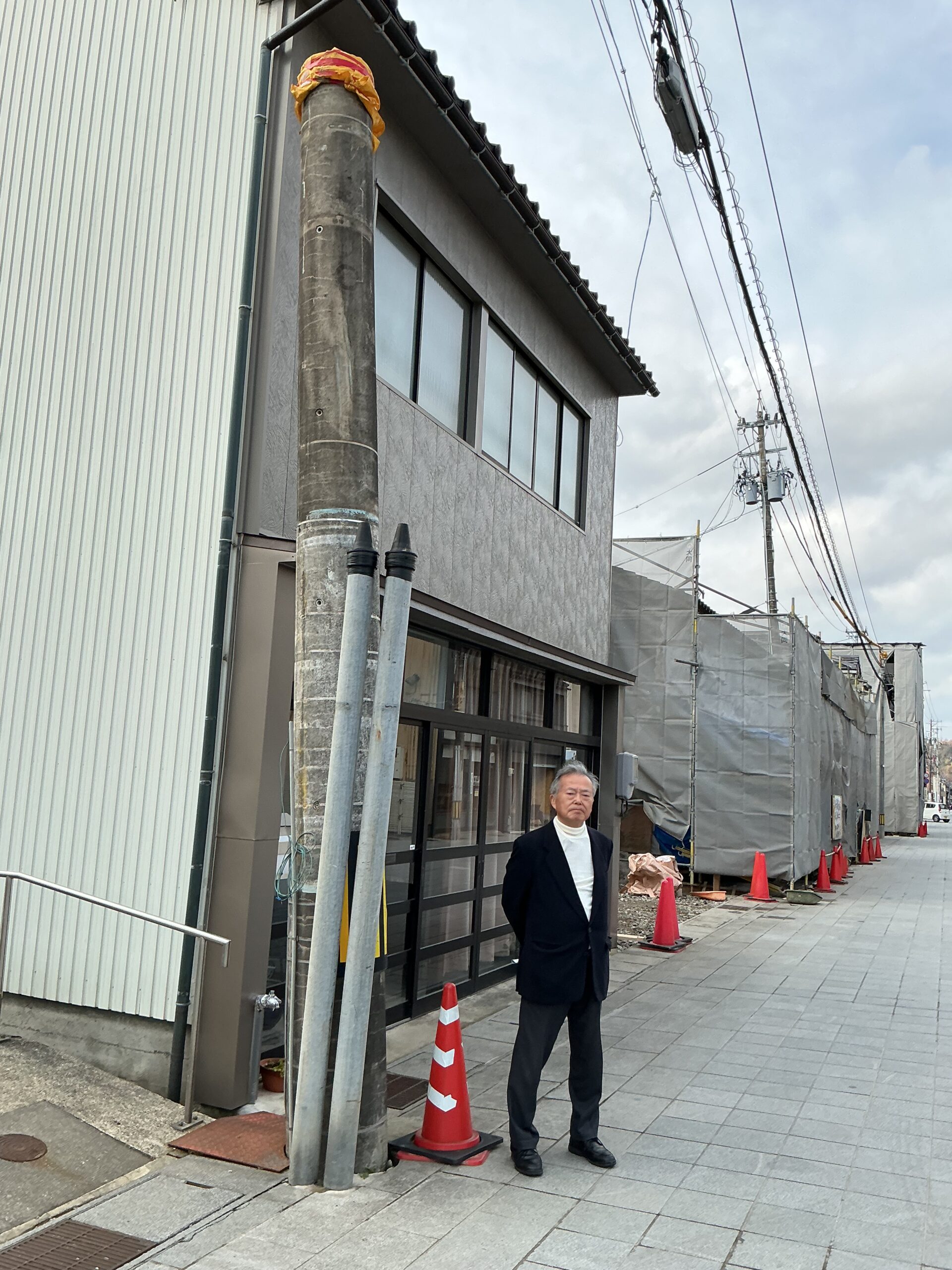 【13】傘寿を記念し友人たちと北陸の旅へ/12-5 ギャラリー 2025年12月6日 ad-akamatsu 80歳になったのを記念して、友人たち5人で金沢に2泊3日で行き、最終日には大学同級の友人と2人だけで七尾に行きました。写真は七尾駅近くの一本杉通りで曲がったままの電柱と小丸山城址での記念撮影です。この旅の詳細は、ブログ『後の祭り』の12月5日号に書いていますので/12-5